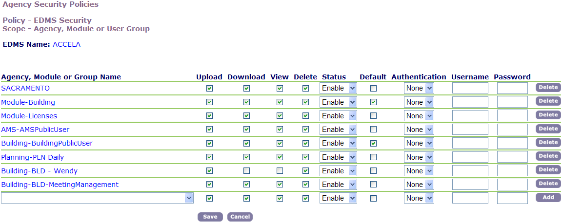 - If you enable more than one EDMS security policy from the list, check the box next to the policy