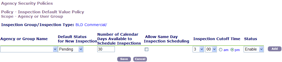Adding or Editing an Inspection Default Value Policy