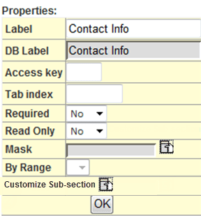 - Click Customize Sub-section. Refer to Designing Forms for Pages for details on modifying the properties of sections and lists.