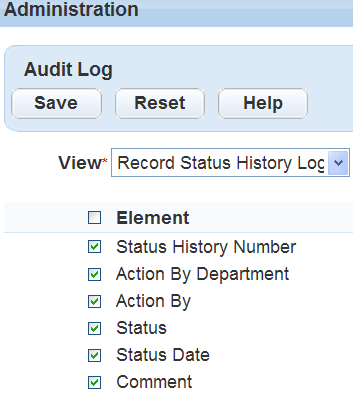 - Select the Record status history elements you want to include in the Record Status History audit