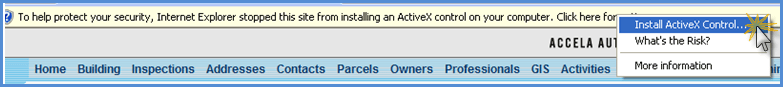 Troubleshooting Tip: If you have not installed ActiveX Controls, Internet Explorer notifies you with one of the prompts below. Follow the prompts to install ActiveX Controls.