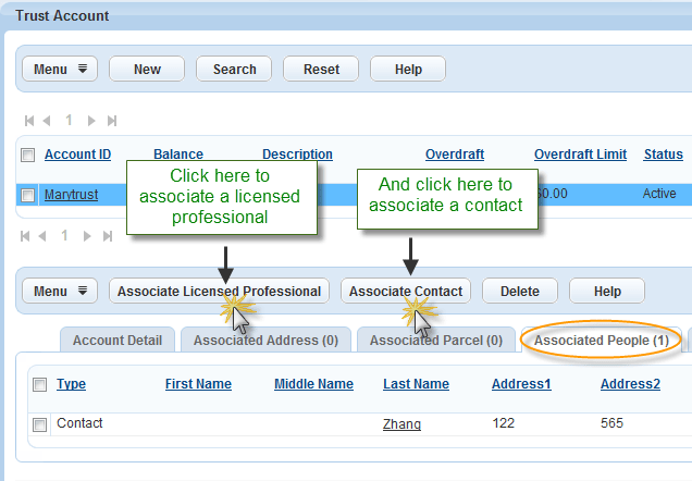 To associate individuals to the trust account follow the instructions in Associating People with a Trust Account.