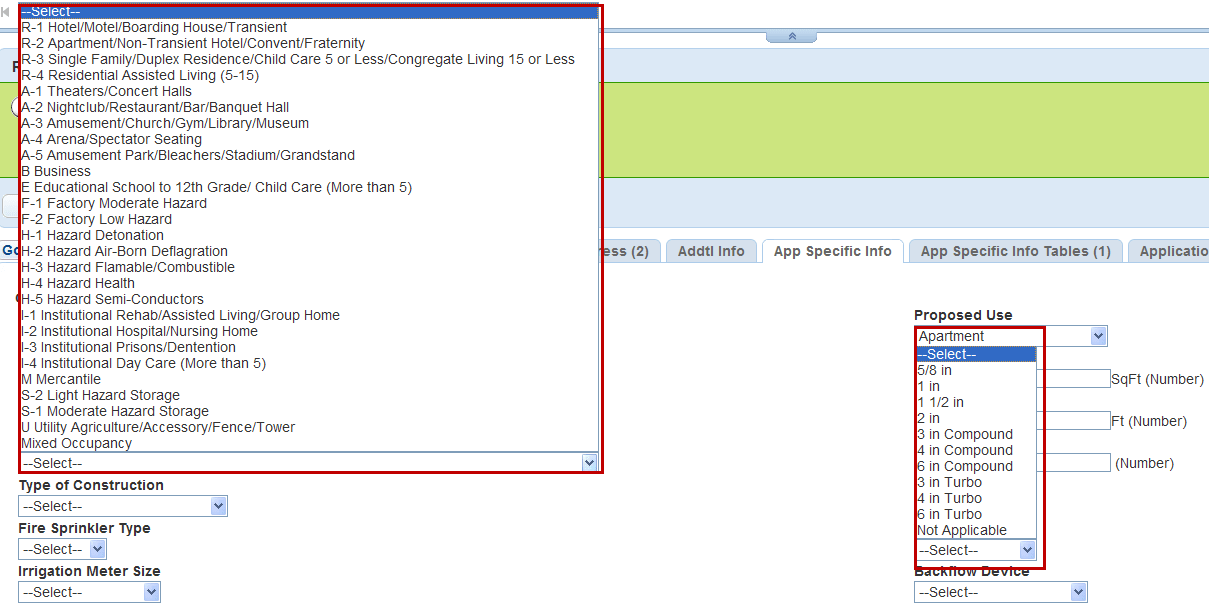 Civic Platform displays the shared drop-down values that you associated with the drop-down values.