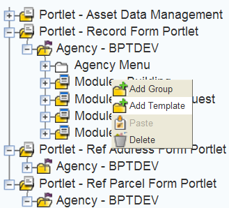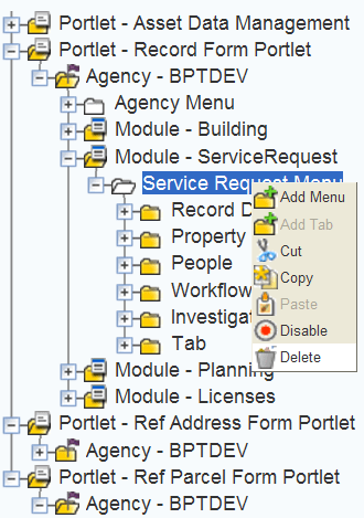 Creating template menus for specific modules streamlines the different tasks for each department in the agency. For example, the building department and the enforcement department perform some similar tasks, but they also have some unique, department-specific tasks. Creating module specific template menus helps users navigate to tasks that are unique to their department.