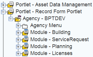 There are six modules in Civic Platform: building, service request, enforcement, licenses, permits, and planning. All these modules perform unique tasks in Civic Platform, which requires you to create a template menu for each module. When you add a template menu to a module you can add, delete, and modify the menus associated with the module.