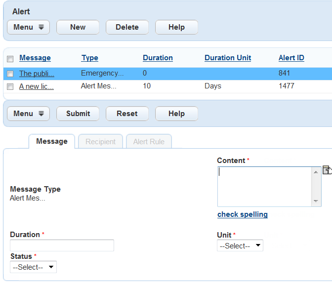 Privileged users can create alerts to notify groups at your agency of all kinds of events. After you create an alert it displays in the Alerts portlet, where you can edit, delete, and manage its recipients.