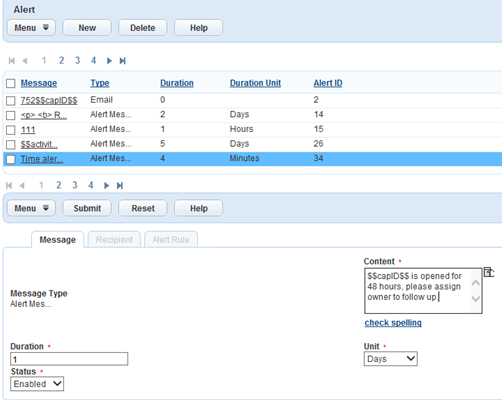 Use time variables in alerts to notify specific users when, for example, a user creates a service order and a specific amount of time elapses before they assign the service order to a user.
