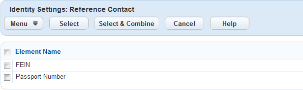 Table 1. Possible Reference Contact Identifier Fields Identifier Field Description Email The email address of the contact. FEIN This acronym stands for Federal Employer Identification Number and identifies a business for tax purposes. This field is only active when the Contact Type selected is Organization. Driver’s License Number The driver’s license number of the contact. Driver’s License State The driver’s license state of the contact. Passport Number The contact’s passport number. SSN The contact’s Social Security Number. This field is only active when the Contact Type selected is Individual.