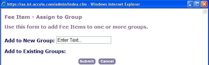 To add the fee items to the existing groups, select the groups you want in the Add to Existing Group list.
