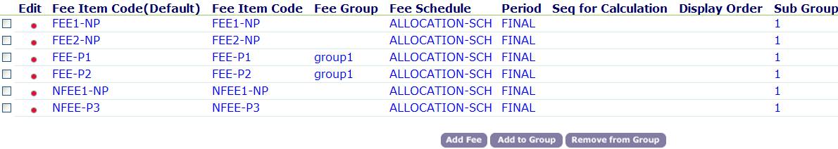 - Edit fee items by clicking on the link for the FEE ITEM CODE.