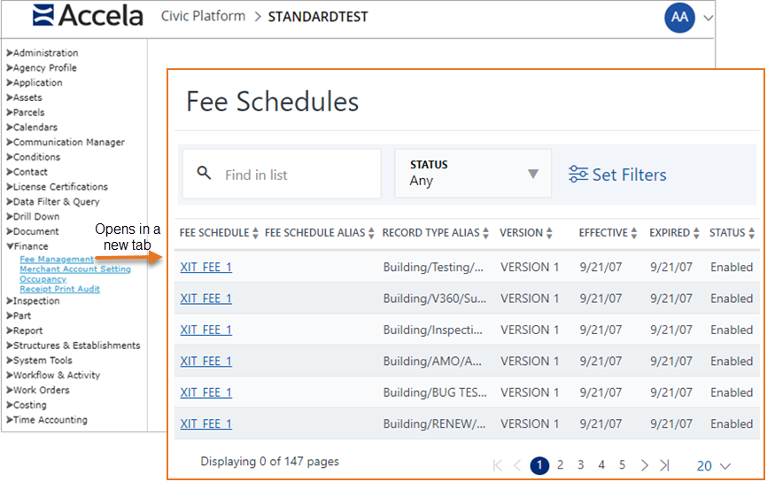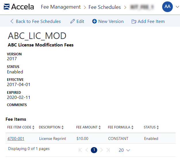 Civic Platform provides a way to easily create a fee schedule that can have multiple version numbers that relate to the effective date. Although you can create multiple versions of a fee schedule, only one can be active and enabled at a time. You can configure different versions of a fee schedule, so that the amount of the fee matches the rate of inflation.