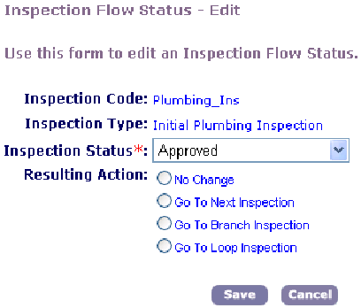 Set the Inspection Status for the task, and modify the Resulting Action (in the flow control column) as needed.