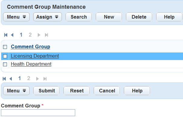 Access the Comment Group Maintenance portlet (Accessing the Comment Group Maintenance Portlet).