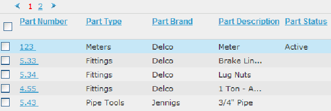 The search criteria might begin with the Part Number. If you do not have the number, identify the Part Type as fittings, because a fitting is the part needed to fix the water main. Then identify the part description and the part brand. The unit cost can also help in limiting your search results.