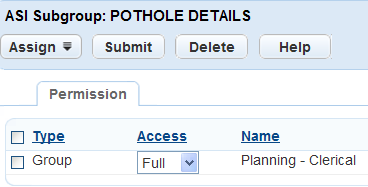 - In the permission detail portlet, click or roll your mouse over Assign,