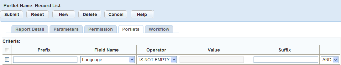 For reports associated with Civic Platform portlets, you can set criteria only for form portlets. The criteria option is not applicable to list or search portlets.