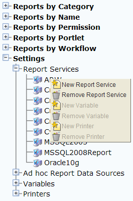 You can remove report services that are incorrect or that you no longer need. You must also remove the reports that you reference in the report service, or update them to use a different report service, before you can remove a report service. After you remove a report service it is no longer available within Report Manager when setting up reports.