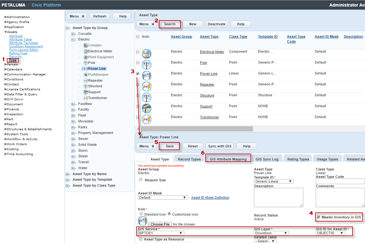 - Go to Civic Platform Administration > Assets > Types > Asset Type administration portlet.