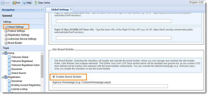 Accela Citizen Access now includes Brand Builder, which provides self-service tools for agency administrators to configure a variety of branding elements. The use of this feature removes a dependency on third party developer resources when editing branding-related configuration files.