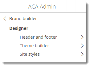 This feature provides agency administrators the ability to make common branding style changes to font sizes, color schemes, icons, and themes. Brand Builder also provides the option to import or export branding styles. The principal sections of Brand Builder are Header and footer, Theme builder and Site styles.