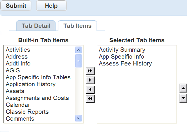 Civic Platform moves the Tab Item to the Selected Tab Items box.