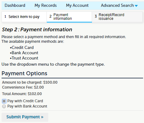 In Citizen Access, when a new application is started, the payment screen should now display the convenience fee options.