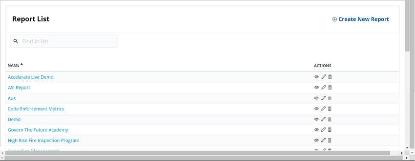 From the Accela Insights Reports List, click Create New Report.