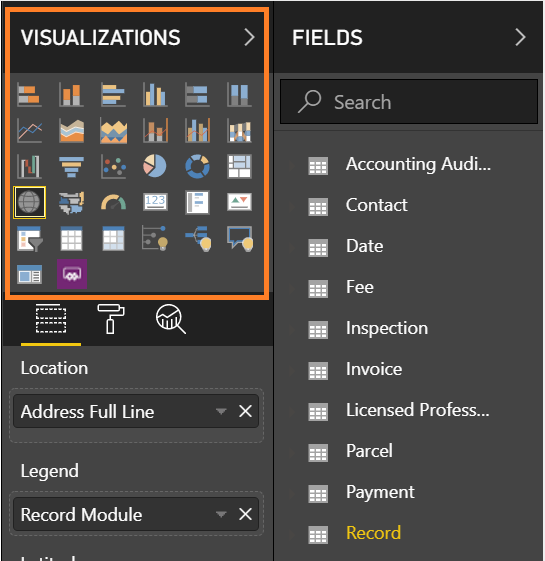 and then clicking the desired visualization icon and configuring it.