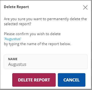 The Delete Report confirmation pop up appears to
