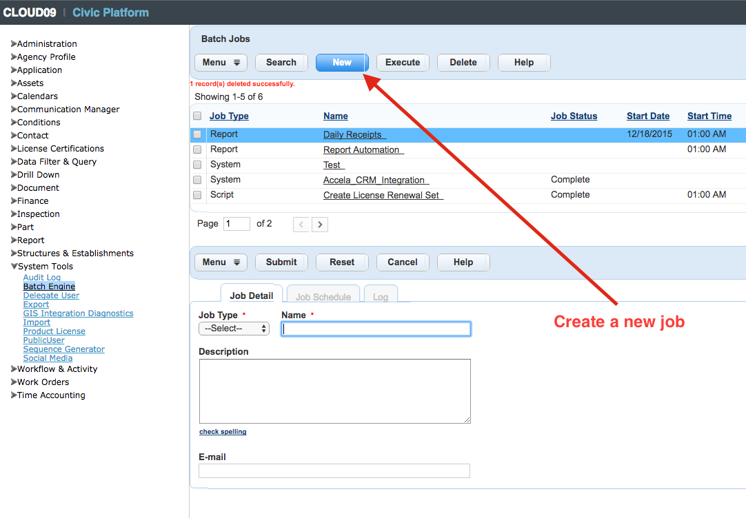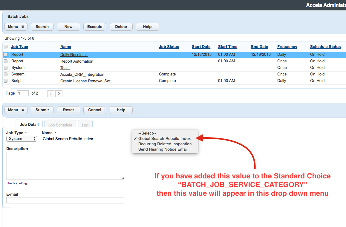 - Create a Global Search Index Batch Job. See Creating a Global Search Index Batch Job