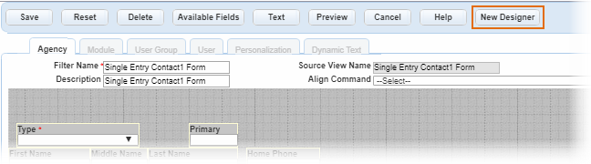 To access the new Form Designer, click the New Form Designer