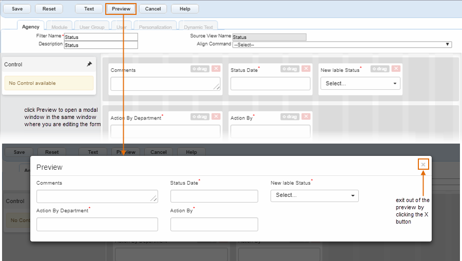 To preview the form with your changes, click the Preview button on the toolbar.