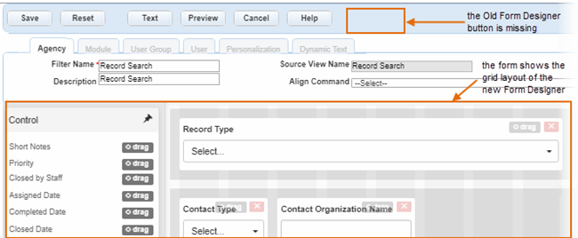 The new Form Designer includes these enhancements from the previous form designer.