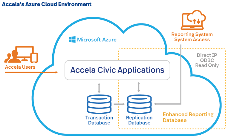 The Accela Enhanced Reporting Database for SaaS/Azure customers is a SQL-Server-based, full replication of the Accela cloud-based transaction database, providing direct, secure, and responsive access to data hosted in Accela’s cloud. It provides increased flexibility for data analysis and reporting from Enterprise Resource Planning (ERP) systems, HR applications, CRM, and Community Development and Regulatory (CDR) solutions—allowing you to access your data with the business intelligence and reporting tools of your choice.