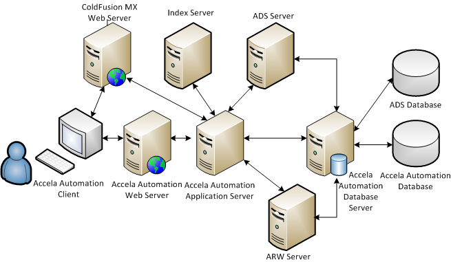 Accela Document Services (ADS) server.Provides access to stored documents. ADS uses a different database instance tha Civic Platform and ARW.