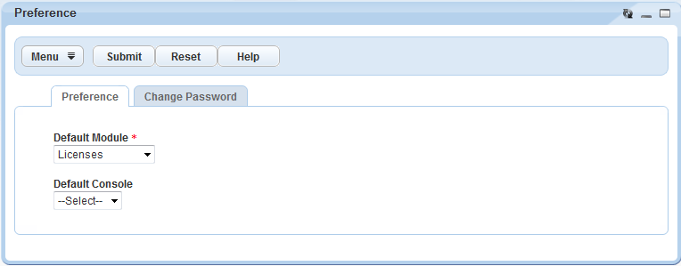 If you configured different consoles for different modules, the Preference portlet (Preference Portlet) enables you to select the console you want to use.
