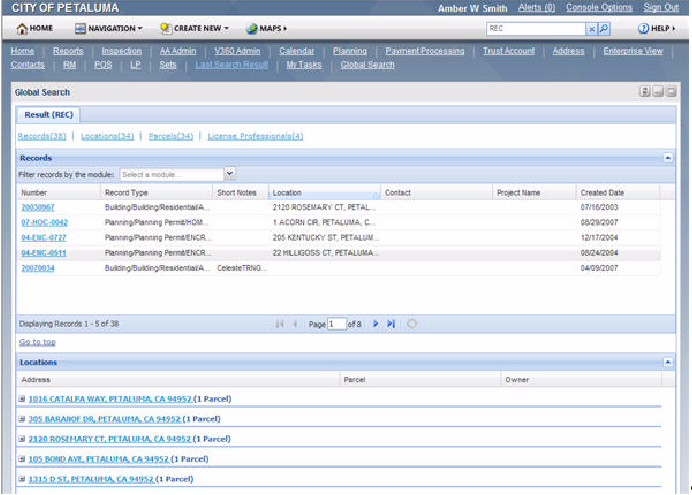 Civic Platform provides users with global search and portlet-specific search feature to locate records and objects throughout the Civic Platform database.