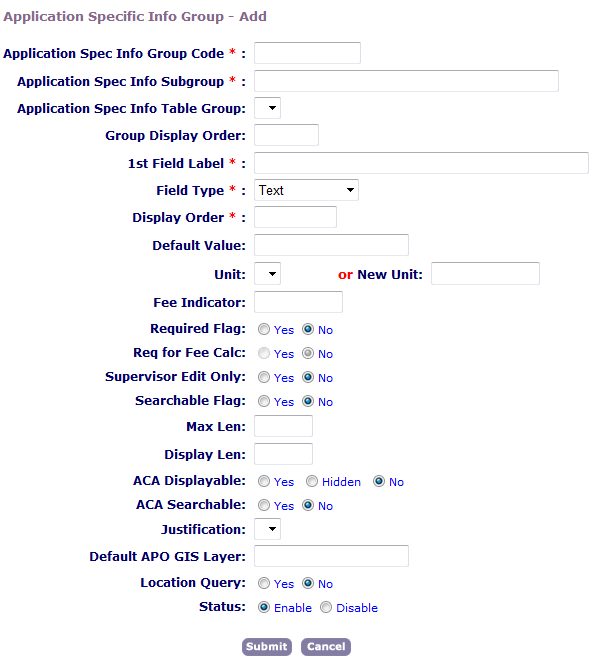 An Application Specific Information (ASI) group defines a set of information associated with records of a particular record type. This information includes address, parcel, and contact information, in addition to standard application fields.