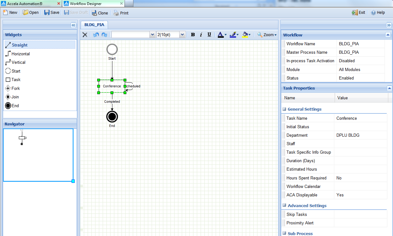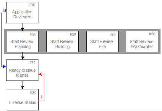 Civic Platform provides two options for designing workflows; 1) a graphical tool, and 2) a legacy tool. The graphical design tool provides most of the functions of the legacy tool, but in an easier visually-based interface.