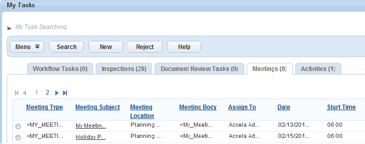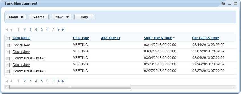 You can access, then operate on, instances of these task types through tabs in the My Tasks portlet (My Tasks Portlet), tabs in the record details portlet (Record Details Portlet), or the list of tasks in the Task Management portlet (Task Management Portlet).