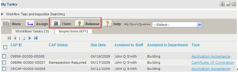 My Tasks portlet > Workflow Tasks tab > Claim, Release buttons