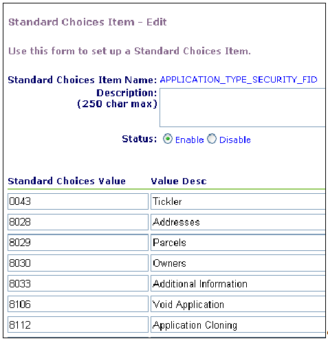 Use this Standard Choice to control access to an application based on its status. Enter each workflow, or process, by FID.