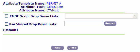 - Mark the EMSE Script Drop Down Lists: check box and assign the data source script for the attribute field. For example, the newly modified GetPeopleTemplateDropdownListFieldScript.