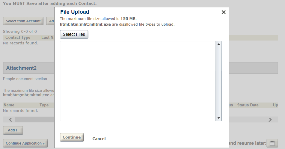 results in Citizen Access, the file upload behavior can only