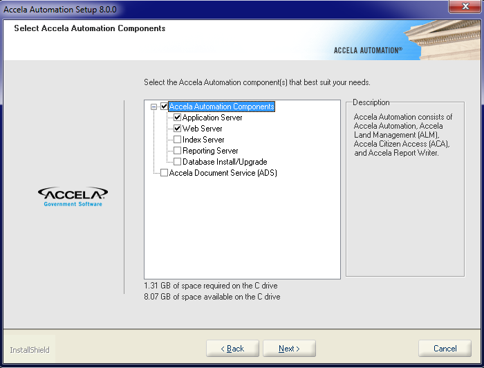 Note:If there is 0.00MB of space required on the E drive, this indicates that you are in the Maintenance mode and you installed all the checked components from the previous installation.