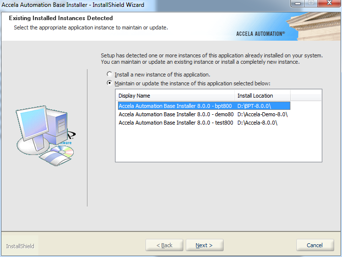 Highlight the instance to maintain or repair and select the option to maintain or update the highlighted instance.
