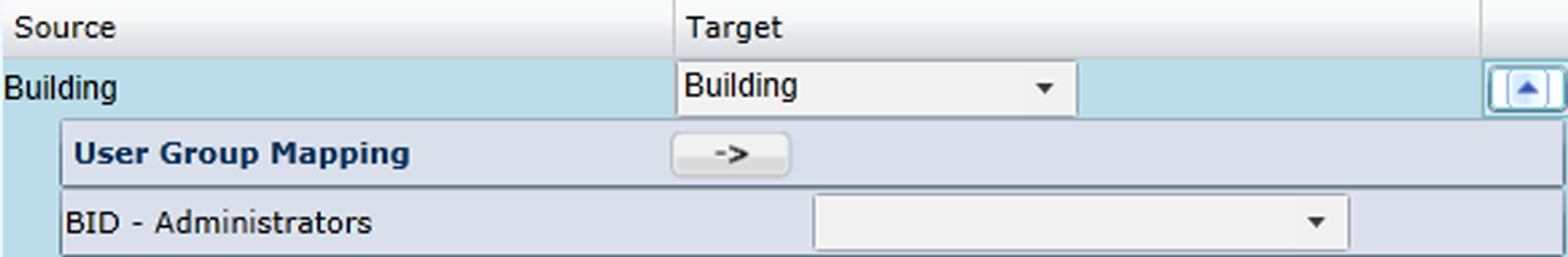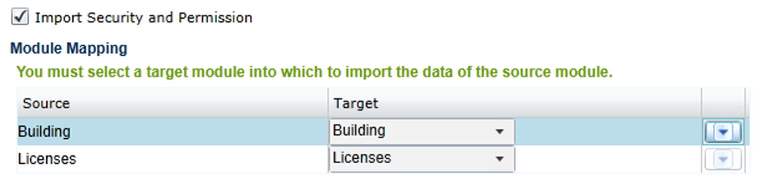 You can click the arrow button beside the User Group Mapping label to automatically populate the target user group field with the source user group name, on the precondition that the same user group exists in the target module.