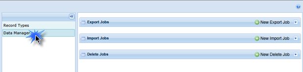 - Click the down arrows next to the New Export Job, New Import Job, and New Delete Job buttons to