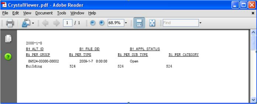 Civic Platform displays The report executed successfully in the web browser.