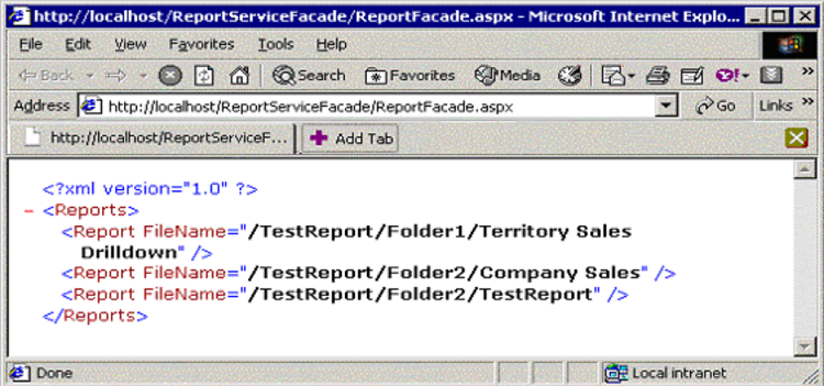 If ReportFacade.aspx opens successfully, it displays like this example: